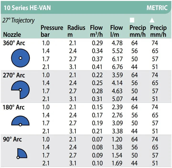 De Rainbird HE-VAN nozzles bieden een gelijkmatige dekking over het gehele sproeigebied, voor een gezond en mooi landschap. Dankzij de hoge efficiëntie van de sproeimondjes kun je de sproeitijden tot wel 35% verkorten, waardoor je water én geld bespaart.