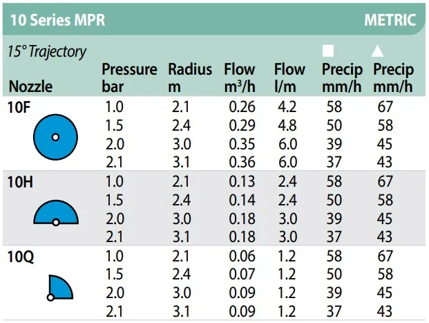 De Rainbird MPR nozzles zijn gemaakt van hoogwaardige kwaliteit en geven een optimale gelijkwaardige waterverdeling. De nozzles zijn ideaal voor het besproeien van bloemperken of graszoden.