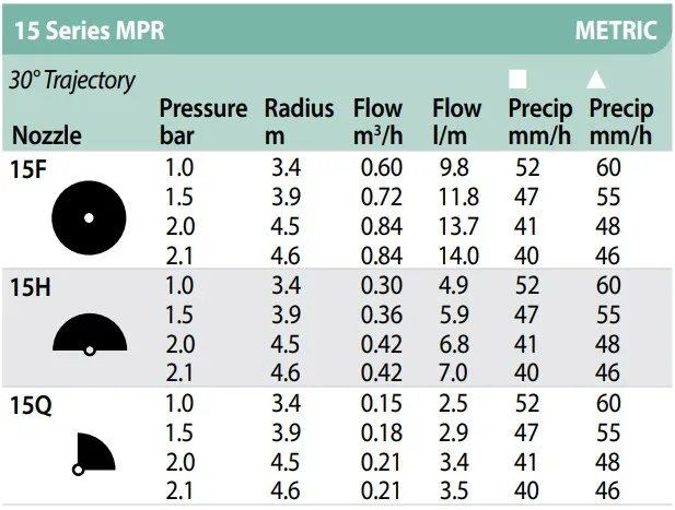 De Rainbird MPR nozzles zijn gemaakt van hoogwaardige kwaliteit en geven een optimale gelijkwaardige waterverdeling. De nozzles zijn ideaal voor het besproeien van bloemperken of graszoden.