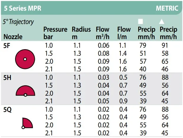 De Rainbird nozzle MPR-5F rood is geschikt voor montage op de Rainbird 1800 pop-up sproeier serie. Deze nozzle heeft een vaste sproeihoek van 360° en is hierbij een half-circle nozzle. Bij de nozzle wordt er een filterzeef geleverd die verstopping voorkomt en zorgt voor een nauwkeurige afstelling van de straal.