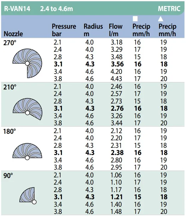 De Rainbird R-VAN nozzles zijn voorzien van roterende straaltechnologie die water gelijkmatig verspreidt met een lage snelheid, waardoor afspoeling en erosie aanzienlijk worden verminderd. Daarbij kunnen de sproeierafstanden eenvoudig met de hand worden aangepast. Hiervoor is geen gereedschap nodig.