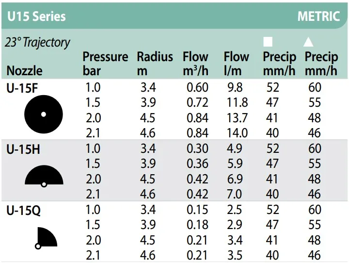 De Rainbird U nozzles zijn gemaakt van hoogwaardig materiaal en geven een optimale gelijkmatige waterverdeling. Dankzij de twee gleuven wordt er een sublieme waterverdeling verkregen. Ideaal daar waar een minimale overlap gewenst is.