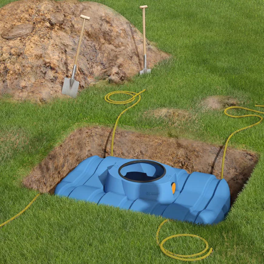 Geleverd met een 500 mm deksel incl. telescopische schacht tot 70 cm en rubberen afdichting. De tank heeft aan de bovenzijde een 50 mm mof aansluiting.