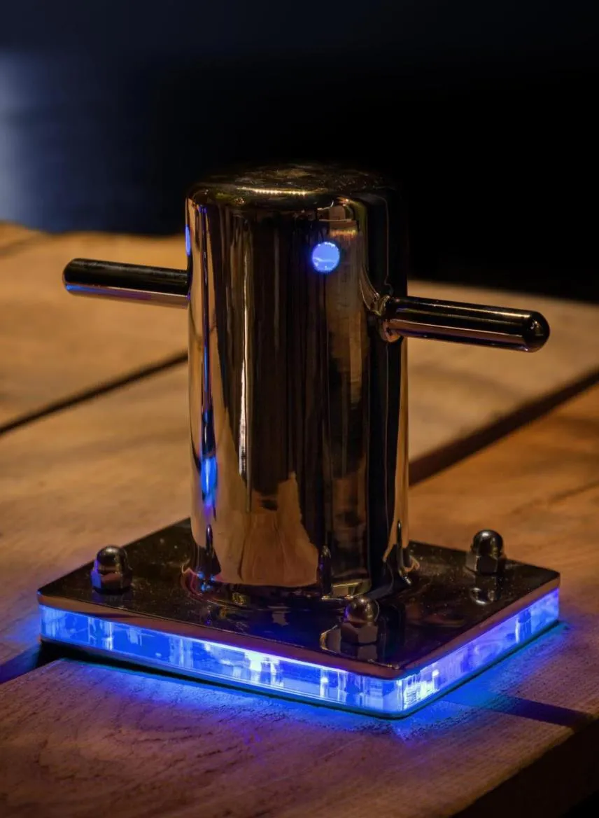 De Sus Small Bolder Blue 24V is een onderscheidende lamp die te gebruiken is op steigers en naast verlichting ook als bevestiging voor boottouwen te gebruiken is. Zo vind je in het donker probleemloos je punt voor aanleggen. Naast deze praktische functie geeft de Small Bolder ook een mooie uitstraling. Deze stijlvolle bolders zijn te verkrijgen in twee verschillende groottes en lichtkleuren.