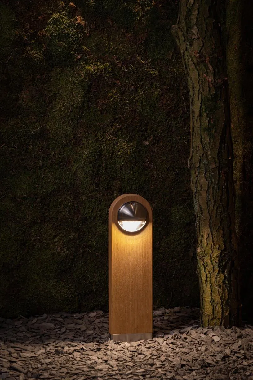 De Sus Small One Oak RVS 24V heeft dankzij de combinatie van hout en metaal een eigentijdse uitstraling. De staanders zijn van eikenhout en de lichtarmatuur en de voet zijn van RVS316.