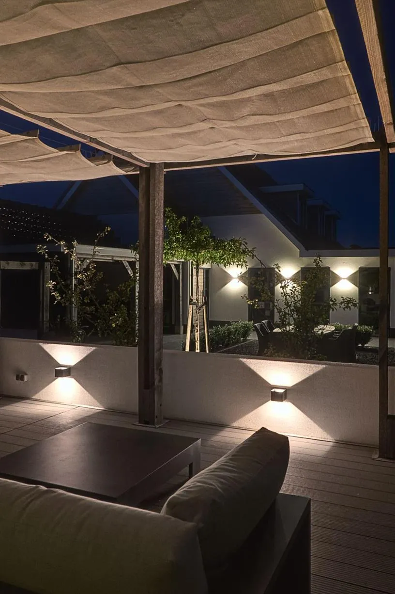 De Sus Square Black 230V is een tijdloos vormgegeven, vierkante wandlamp met gepoedercoate aluminium behuizing. Zo is deze wandlamp goed bestand tegen weerinvloeden en heeft een IP65 en IK08 waarde. De wandlamp straalt aan 2 kanten licht uit en is voorzien van 24 ledlampjes met een lichtbereik van 2 x 300 cm. De lamp heeft een straalhoek van 2 x 120°. Het armatuur heeft een hoogte van 9 cm, is 11 cm breed en 12.5 cm diep.