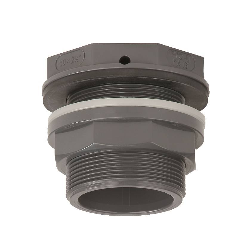 Deze VDL PVC tankdoorvoer met vlakke leegloop is ideaal voor een koppeling met uw PVC drukleiding. Hij is voorzien van kleine uitlaatgaatjes van 5 mm. Hiermee crëert hij een zeer vlakke uitlaat. Hij beschikt over twee inwendige lijmverbindingen met buitendraad met rubberen afdichting. Hij is leverbaar in de PN10 drukklasse. Door de perfecte pasvorm is hij moeiteloos te monteren op uw druk PVC. De koppeling is leverbaar in een uitvoering van 16 tot en met 63 mm. De buitendraadverbinding is leverbaar vanaf 3/4'' tot en met 2 3/4''. Zo vindt u altijd de juiste koppeling voor uw PVC drukleiding.