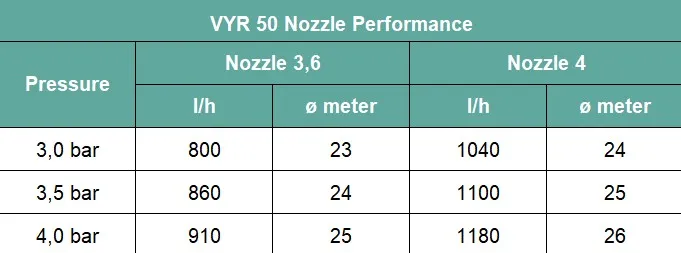 VYR 50 sectorsproeier, gemaakt van messing / RVS. De sproeier heeft aan de onderzijde een 1/2" buitendraad aansluiting en is voorzien van een straalbreker. Geschikt voor de besproeiing van grote oppervlaktes als weilanden, landbouw en sportvelden.