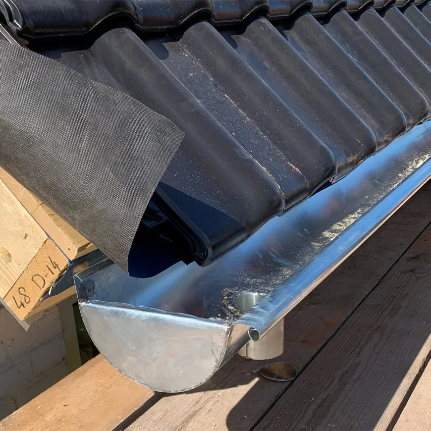 Zorg dat je het uiteinde van de mastgoot die je wilt verbinden schoon, droog en vetvrij is. Plaats vervolgens het zinken eindstuk tegen de binnenrand van de goot en soldeer deze voorzichtig vast. Met een soldeerverbinding sluit je de randen van de hulpstukken waterdicht af.