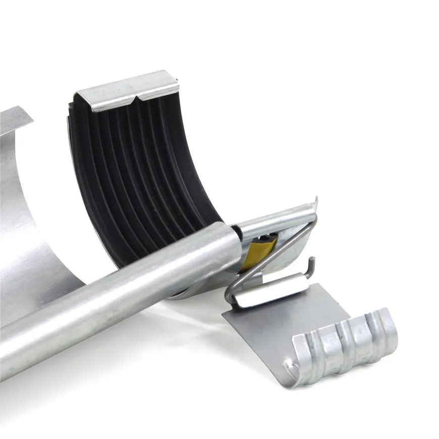 Plaats aan beide kanten een mastgoot of hulpstuk in het verbindingstuk. Druk vervolgens de klem stevig dicht, zodat beide delen niet meer schuiven. Voor de montage hoef je niet te solderen.