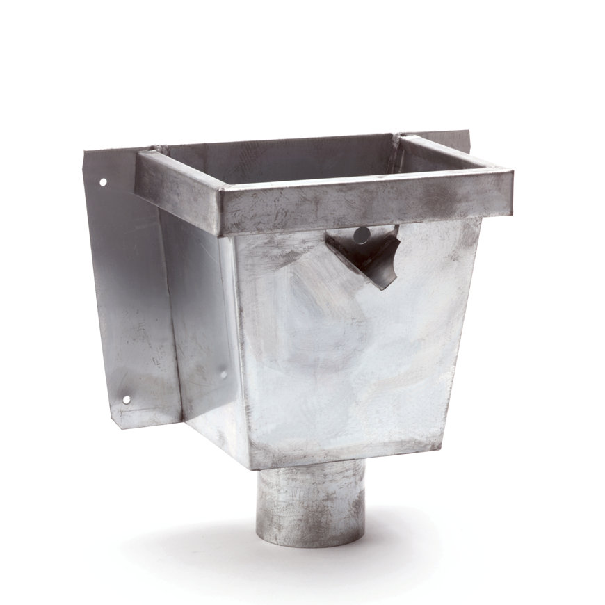 Gebruik de zinken vergaarbak voor het afvoeren van regenwater van een plat dak. De vergaarbak is uitgerust met een geïntegreerde loden kiezelbak die voorkomt dat grind, bladeren en ander vuil in de afvoer terechtkomen. Dankzij de onderuitlaat met spie-einde kan de vergaarbak eenvoudig in een regenpijp worden geplaatst.